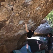 Blue Lizard Climbing and Yoga Hueco Tanks guiding on January 29, 2023, with Jerome, Austin, Canon, Holden, Liam, and Luke