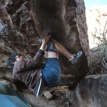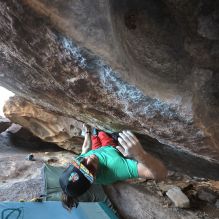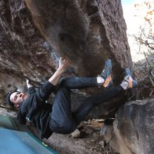 Blue Lizard Climbing and Yoga Hueco Tanks guiding on January 29, 2023, with Jerome, Austin, Canon, Holden, Liam, and Luke