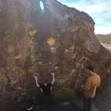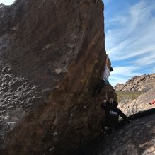 Blue Lizard Climbing and Yoga Hueco Tanks guiding on January 29, 2023, with Jerome, Austin, Canon, Holden, Liam, and Luke