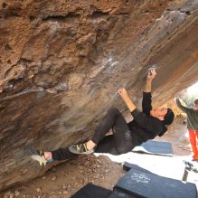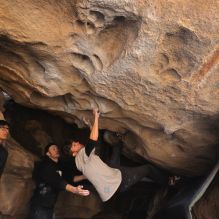 Blue Lizard Climbing and Yoga Hueco Tanks guiding on January 29, 2023, with Jerome, Austin, Canon, Holden, Liam, and Luke