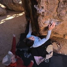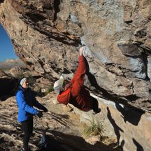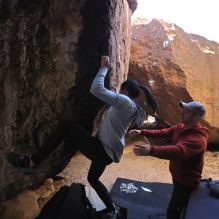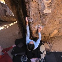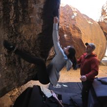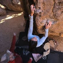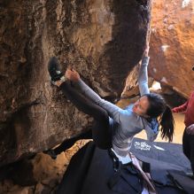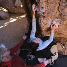 Blue Lizard Climbing and Yoga Hueco Tanks guiding on February 16, 2023, with Amelia, Crystal, Megan, and Steven |