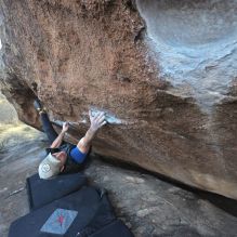 Blue Lizard Climbing and Yoga Hueco Tanks guiding on February 17, 2023, with Amelia, Crystal, Megan, and Steven