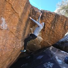 Blue Lizard Climbing and Yoga Hueco Tanks guiding on February 17, 2023, with Amelia, Crystal, Megan, and Steven