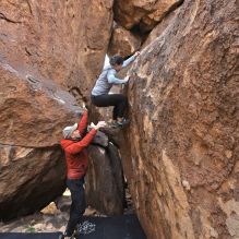 Blue Lizard Climbing and Yoga Hueco Tanks guiding on February 17, 2023, with Amelia, Crystal, Megan, and Steven |