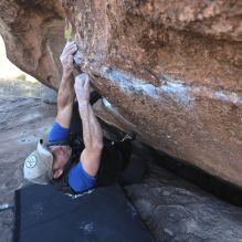 Blue Lizard Climbing and Yoga Hueco Tanks guiding on February 17, 2023, with Amelia, Crystal, Megan, and Steven