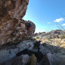 Blue Lizard Climbing and Yoga Hueco Tanks guiding on February 22, 2023, with Joe, Katia & Alfredo, Michael, Rachel, Rich, and Roy