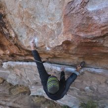 Blue Lizard Climbing and Yoga Hueco Tanks guiding on February 22, 2023, with Joe, Katia & Alfredo, Michael, Rachel, Rich, and Roy