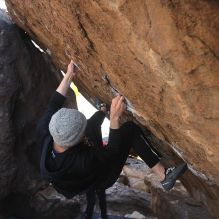 Blue Lizard Climbing and Yoga Hueco Tanks guiding on February 22, 2023, with Joe, Katia & Alfredo, Michael, Rachel, Rich, and Roy