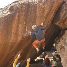 Blue Lizard Climbing and Yoga Hueco Tanks guiding on February 22, 2023, with Joe, Katia & Alfredo, Michael, Rachel, Rich, and Roy