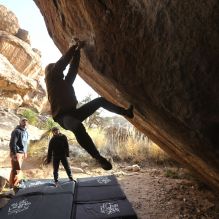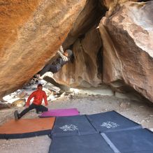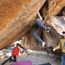 Blue Lizard Climbing and Yoga Hueco Tanks guiding on February 22, 2023, with Joe, Katia & Alfredo, Michael, Rachel, Rich, and Roy