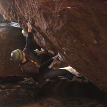 Blue Lizard Climbing and Yoga Hueco Tanks guiding on February 22, 2023, with Joe, Katia & Alfredo, Michael, Rachel, Rich, and Roy
