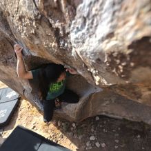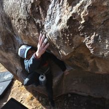 Blue Lizard Climbing and Yoga Hueco Tanks guiding on February 24, 2023, with Michael, Rachel, Rich, and Roy