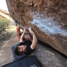 Blue Lizard Climbing and Yoga Hueco Tanks guiding on February 24, 2023, with Michael, Rachel, Rich, and Roy