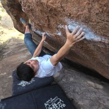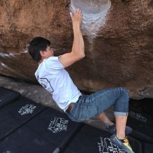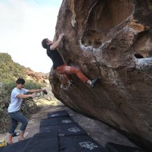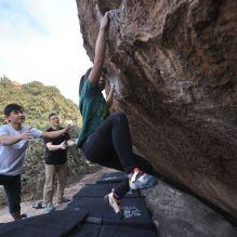 Blue Lizard Climbing and Yoga Hueco Tanks guiding on February 24, 2023, with Michael, Rachel, Rich, and Roy