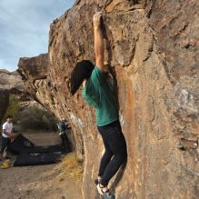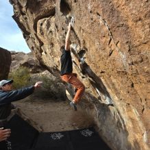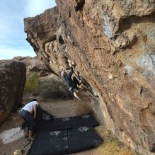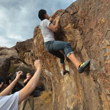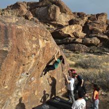 Blue Lizard Climbing and Yoga Hueco Tanks guiding on February 24, 2023, with Michael, Rachel, Rich, and Roy