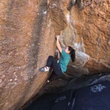 Blue Lizard Climbing and Yoga Hueco Tanks guiding on February 24, 2023, with Michael, Rachel, Rich, and Roy