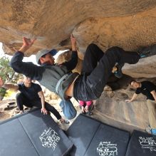 Blue Lizard Climbing and Yoga Hueco Tanks guiding on February 24, 2023, with Michael, Rachel, Rich, and Roy