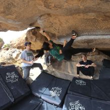 Blue Lizard Climbing and Yoga Hueco Tanks guiding on February 24, 2023, with Michael, Rachel, Rich, and Roy |