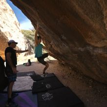 Blue Lizard Climbing and Yoga Hueco Tanks guiding on March 10, 2023, with Fabian, Michael, and Richard