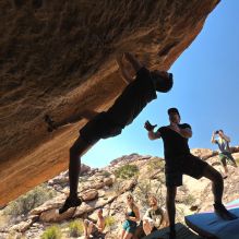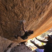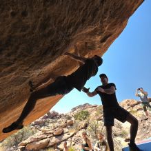 Blue Lizard Climbing and Yoga Hueco Tanks guiding on March 10, 2023, with Fabian, Michael, and Richard