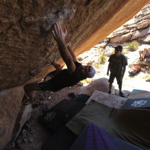 Blue Lizard Climbing and Yoga Hueco Tanks guiding on March 10, 2023, with Fabian, Michael, and Richard