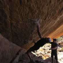 Blue Lizard Climbing and Yoga Hueco Tanks guiding on March 10, 2023, with Fabian, Michael, and Richard