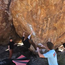 Blue Lizard Climbing and Yoga Hueco Tanks guiding on March 14, 2023, with Maggie and Kevin, Riley and Dean and Travis, and Wendy and Trace