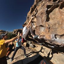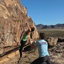 Blue Lizard Climbing and Yoga Hueco Tanks guiding on March 14, 2023, with Maggie and Kevin, Riley and Dean and Travis, and Wendy and Trace