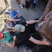 Blue Lizard Climbing and Yoga Hueco Tanks guiding on March 15, 2023 with Alex; Ariel, Beckett, Laurel, Luke, Marin, and Rhett; Laura; Maggie and Kevin