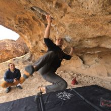Blue Lizard Climbing and Yoga Hueco Tanks guiding on November 23, 2023, with Alex, Gabby, Joe, Santiago, and Sophia