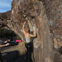 Blue Lizard Climbing and Yoga Hueco Tanks guiding on November 24, 2023 with Matt, Matteo, Morgan, Riki, and Zarrick