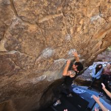 Blue Lizard Climbing and Yoga Hueco Tanks guiding on November 24, 2023 with Matt, Matteo, Morgan, Riki, and Zarrick