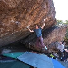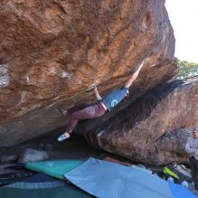 Blue Lizard Climbing and Yoga Hueco Tanks guiding on December 2, 2023, with Austin, Erik, James, and Merritt