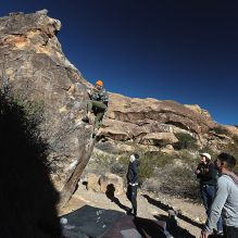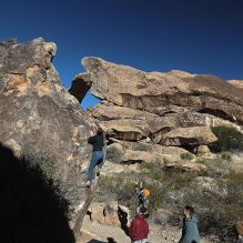 Blue Lizard Climbing and Yoga Hueco Tanks guiding on December 10, 2023, with Cathy, Chey & Em, Jay, Nick K, and Nick P