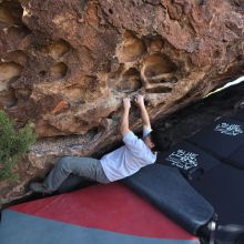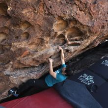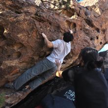 Blue Lizard Climbing and Yoga Hueco Tanks guiding on December 22, 2023, with Bijou & Joonou, Jack, Natalie & Byron, Sean, and Tim
