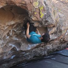Blue Lizard Climbing and Yoga Hueco Tanks guiding on December 22, 2023, with Bijou & Joonou, Jack, Natalie & Byron, Sean, and Tim