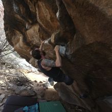 Blue Lizard Climbing and Yoga Hueco Tanks guiding on February 25, 2024, with Dan, Devin, Nick, and Sean