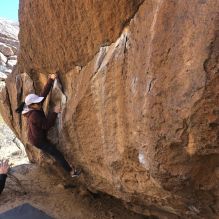 Blue Lizard Climbing and Yoga Hueco Tanks guiding on March 9, 2024, with Jasper, Maria, Mark, and Tash
