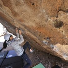 Blue Lizard Climbing and Yoga Hueco Tanks guiding on March 9, 2024, with Jasper, Maria, Mark, and Tash