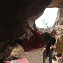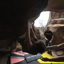 Blue Lizard Climbing and Yoga Hueco Tanks guiding on March 17, 2024, with Mike, Tim, Trace, and Wendy