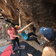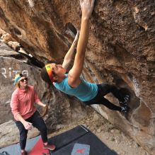 Blue Lizard Climbing and Yoga Hueco Tanks guiding on March 30, 2024, with Katie and Rachel