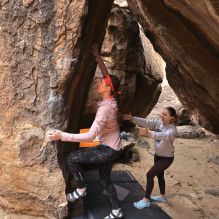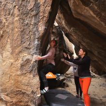 Blue Lizard Climbing and Yoga Hueco Tanks guiding on March 30, 2024, with Katie and Rachel |