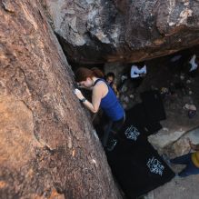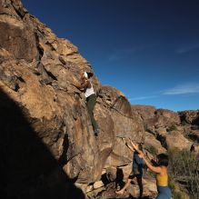 Blue Lizard Climbing and Yoga Hueco Tanks guiding on November 10, 2024, with Alayna, Anika, Becca, Britney, Alison