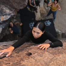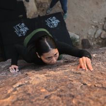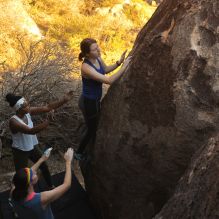 Blue Lizard Climbing and Yoga Hueco Tanks guiding on November 10, 2024, with Alayna, Anika, Becca, Britney, Alison