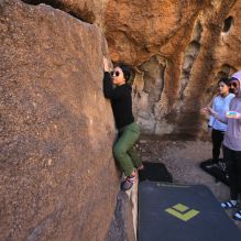 Blue Lizard Climbing and Yoga Hueco Tanks guiding on November 10, 2024, with Alayna, Anika, Becca, Britney, Alison