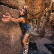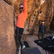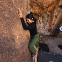 Blue Lizard Climbing and Yoga Hueco Tanks guiding on November 10, 2024, with Alayna, Anika, Becca, Britney, Alison
