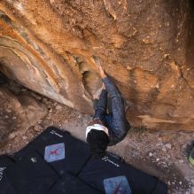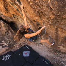 Blue Lizard Climbing and Yoga Hueco Tanks guiding on November 10, 2024, with Alayna, Anika, Becca, Britney, Alison