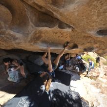Blue Lizard Climbing and Yoga Hueco Tanks guiding on November 10, 2024, with Alayna, Anika, Becca, Britney, Alison