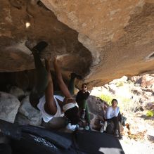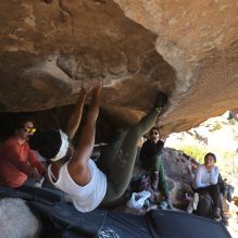 Blue Lizard Climbing and Yoga Hueco Tanks guiding on November 10, 2024, with Alayna, Anika, Becca, Britney, Alison