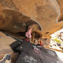 Blue Lizard Climbing and Yoga Hueco Tanks guiding on January 17, 2025, with Andre & Adrian, Elliott & Eme & Harper & Wren, Matt& Ruby& Shannon, and Spencer
